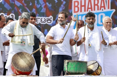 ಭಾರತ್ ಜೋಡೋ ಯಾತ್ರೆಯಲ್ಲಿ ಸಿದ್ದು ಡಿಕೆಶಿ ಇಬ್ಬರ ಕೈ ಹಿಡಿದು ನಗಾರಿ ಬಾರಿಸಿದ ರಾಹುಲ್‌ ಗಾಂಧಿ | JANATA NEWS